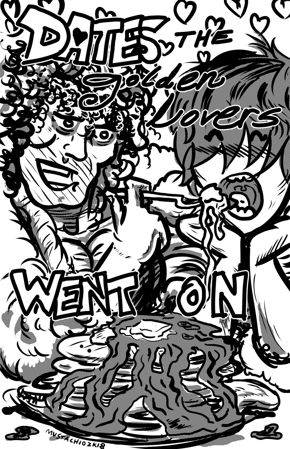 Dates the Golden Lovers Went On is a haiku poetry zine by Amanda Traphagan, co-creator of Red Leather and Danger, featuring cover art by MUSTACHIOSAURUS. The zine depicts 21 imagined moments in the shared life of Kota Ibushi and Kenny Omega, inspired by the deep love they portray in the ring. It is a tribute of sorts to the greatest romance in the history of pro wrestling.
